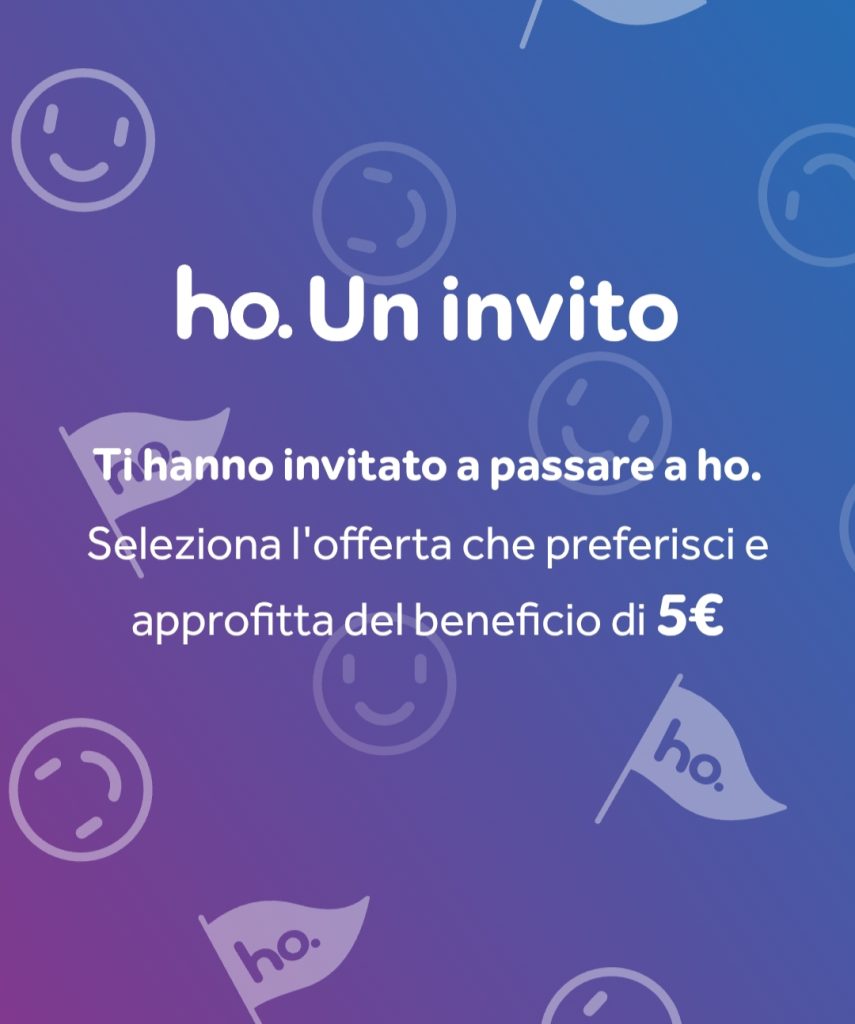 Diventando cliente Ho. mobile, anche tu potrai condividere il tuo codice invito e far ottenere bonus ai tuoi amici, proprio come stai approfittando di questa offerta. Un modo semplice per risparmiare ancora di più!